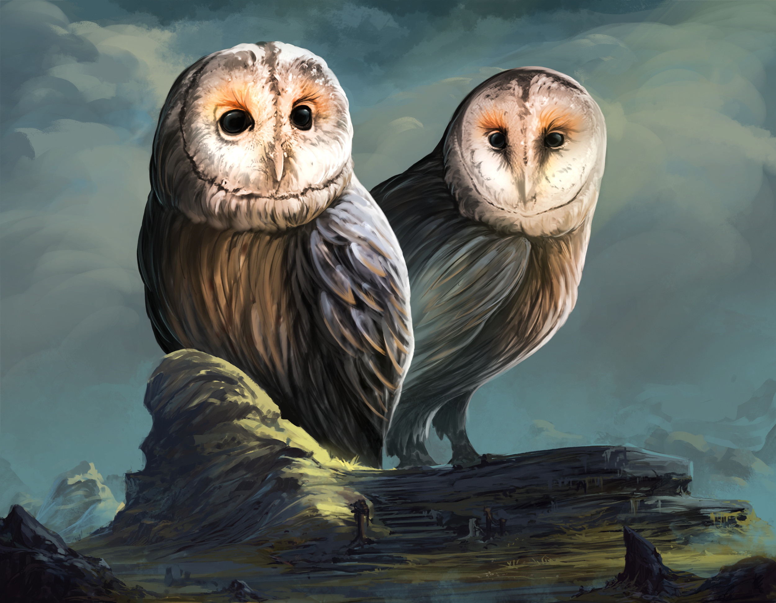 Tearing open a hole in their reality, these giant owl-like creatures hid themselves in Ausrine while their home was destroyed. There, the two Strigiformes laid eggs from which the Solocs hatched and then later died of starvation after they had eaten all of the large animals in the realm.